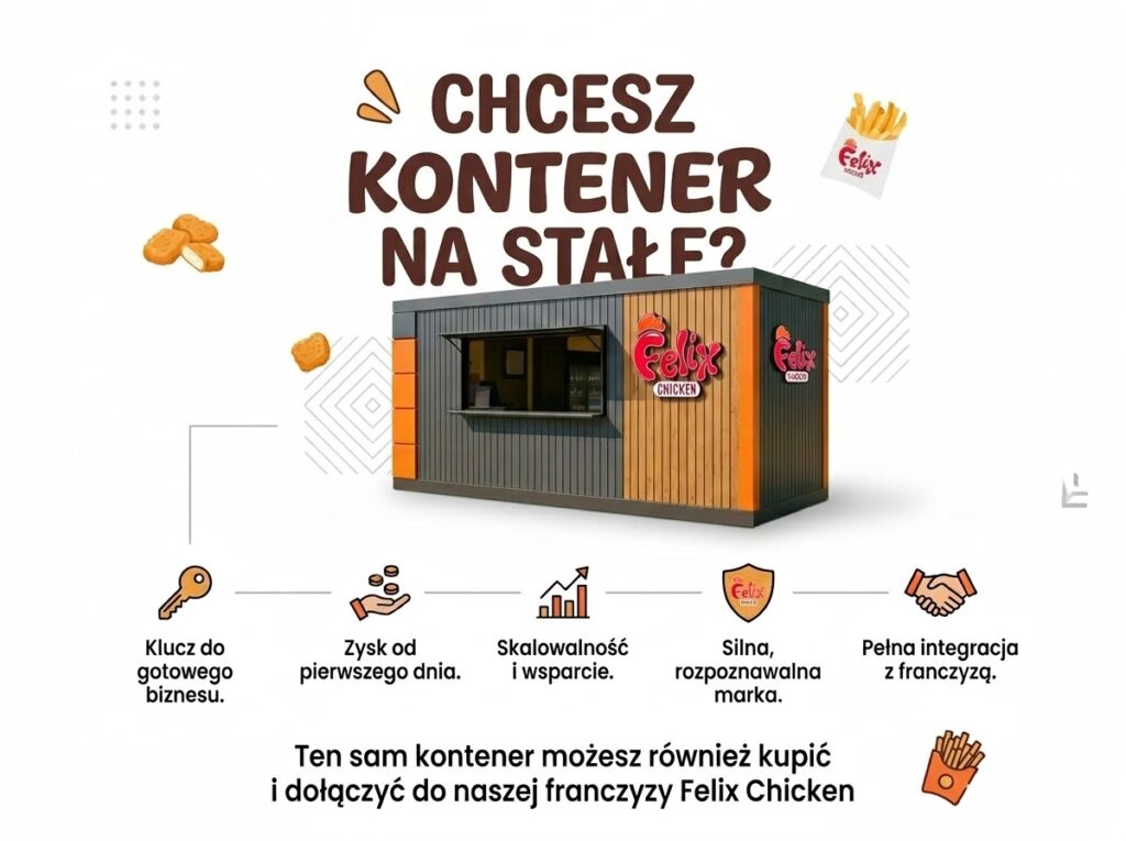 • Ten sam kontener możesz również kupić i dołączyć do naszej franczyzy Felix Chicken –